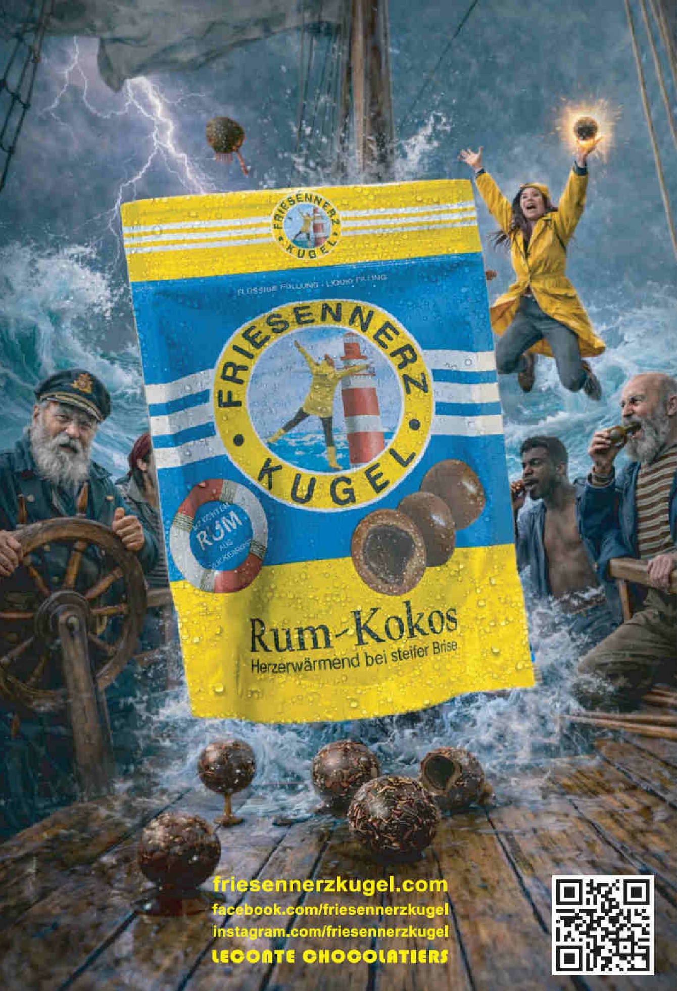 Als Hommage haben wir bei Leconte™Chocolatiers die durch den Rumanteil gerade bei stürmischer Brise herzerwärmende FRIESENNERZKUGEL© entwickelt.